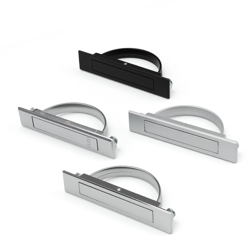 লুকানো হ্যান্ডেলটি দস্তা খাদ দিয়ে তৈরি। এটি চারটি রঙে পাওয়া যায়: কালো, ম্যাট, স্যান্ডব্লাস্টেড এবং পালিশ ক্রোম। এই পৃষ্ঠের চিকিত্সাগুলি পণ্যের জীবনকাল প্রসারিত করে এবং বিবর্ণ বা খোসা রোধ করে।