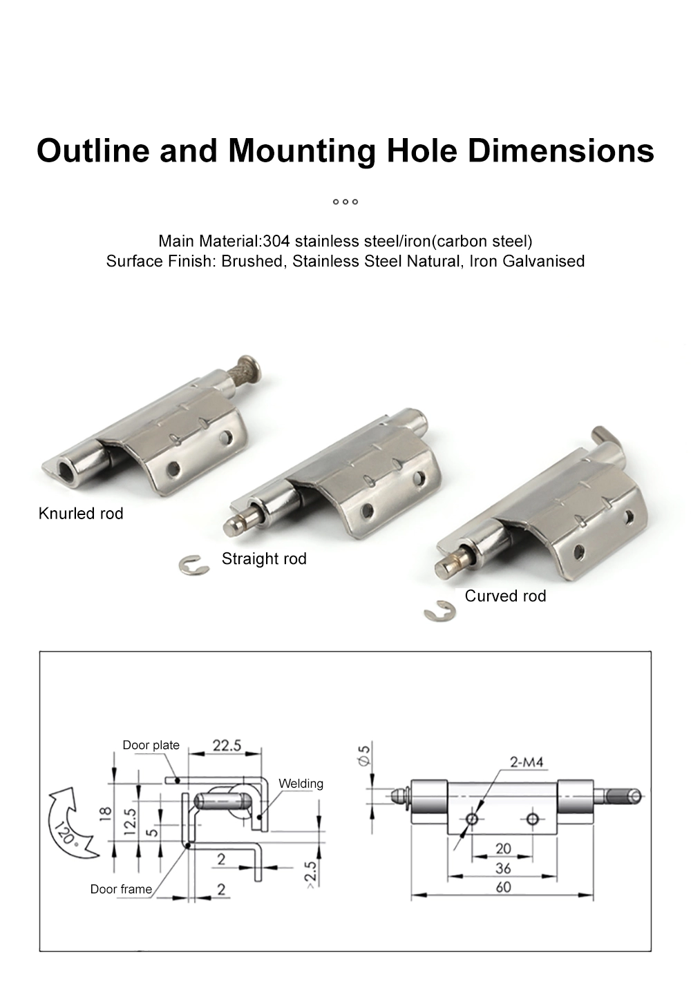 অপসারণযোগ্য কব্জাগুলির এই সিরিজ উভয়ই দস্তা খাদ এবং স্টেইনলেস স্টিল উপাদান বিকল্পগুলি সরবরাহ করে। জিংক অ্যালো সংস্করণে তিনটি পৃষ্ঠের সমাপ্তি অন্তর্ভুক্ত রয়েছে: কালো, উজ্জ্বল সাদা উজ্জ্বল ক্রোম এবং ম্যাট, অন্যদিকে স্টেইনলেস স্টিল সংস্করণটি একটি ব্রাশ প্রক্রিয়া গ্রহণ করে, যা শিল্প দৃশ্যের জন্য আরও উপযুক্ত। স্টেইনলেস স্টিলের সংস্করণটি ব্রাশ করা হয়েছে, যা শিল্প দৃশ্যের জন্য আরও উপযুক্ত। স্টেইনলেস স্টিল সংস্করণটি বিভিন্ন পরিবেশ যেমন আর্দ্রতা, অ্যাসিড এবং ক্ষারির সাথে অভিযোজ্য।